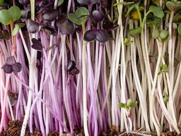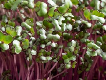 Red cabbage microgreens add a beautiful splash of color, delicate texture, and a mild, fresh flavor to a wide array of dishes. They are best suited for raw applications. Red cabbage microgreens are considered a nutrient powerhouse, containing a higher concentration of certain vitamins and minerals compared to mature red cabbage. They are rich in vitamins, minerals and many other beneficial compounds.